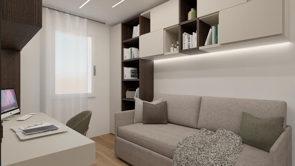 Anche la scelta dei colori può fare la differenza: tonalità neutre e rilassanti favoriscono la concentrazione, mentre un tocco di colore acceso può dare energia e vivacità senza appesantire.