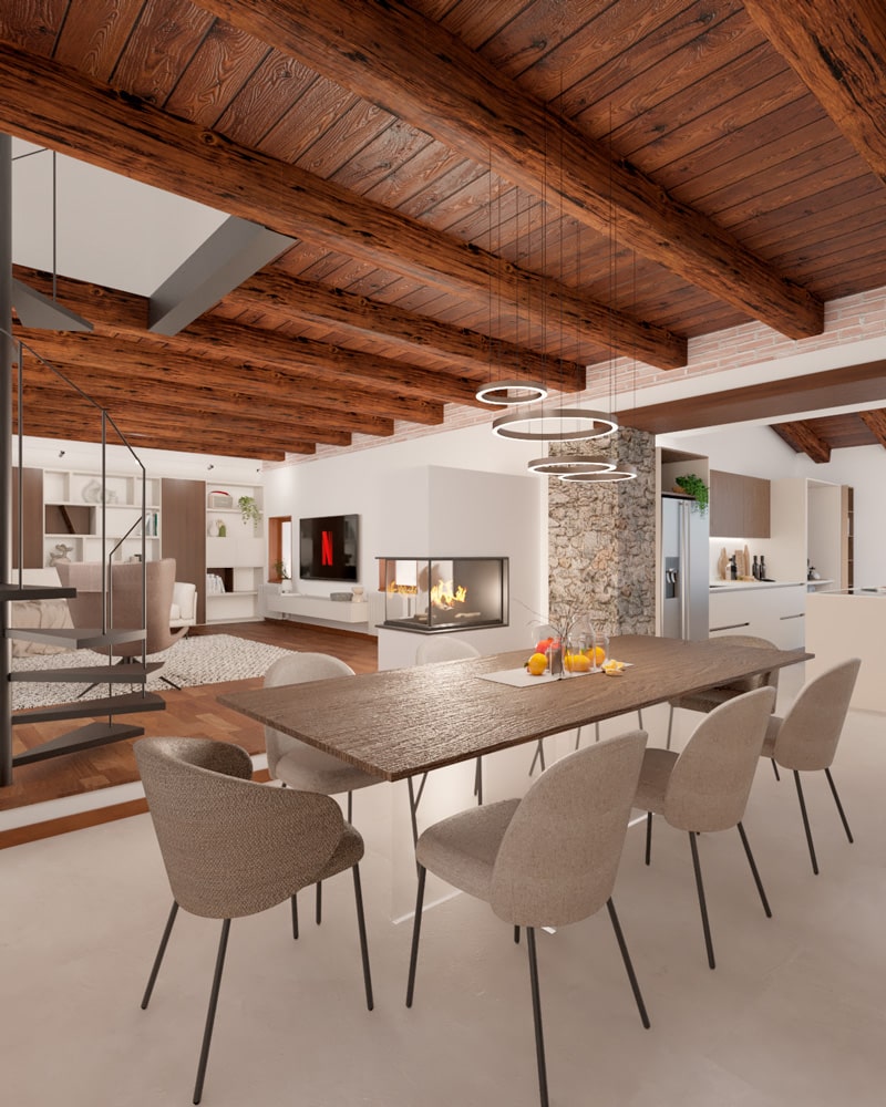 Arredare un ambiente open space significa creare un dialogo tra gli arredi presenti. La cucina, il tavolo, il divano, la libreria: tutti i mobili devono essere coordinati tra loro.