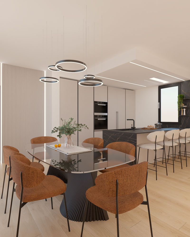In linea generale, una seduta che nasce per il soggiorno non andrà bene in cucina, ma il design contemporaneo offre modelli e soluzioni diverse che possono adattarsi a stanze diverse. - Valuta la dimensione dello spazio che hai a disposizione. Se è ampio allora potrai scegliere un tavolo grande e delle sedute confortevoli, magari anche con i braccioli.